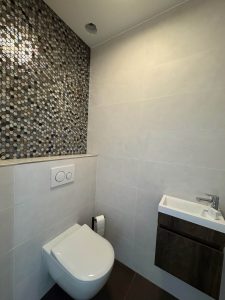 Voor dit toilet heb ik de ombouw gemaakt en al het tegelwerk verzorgd. De keuzes in het tegelwerk komen terug in de en suite badkamer die eerder op deze pagina voorkwam. Een perfecte match!