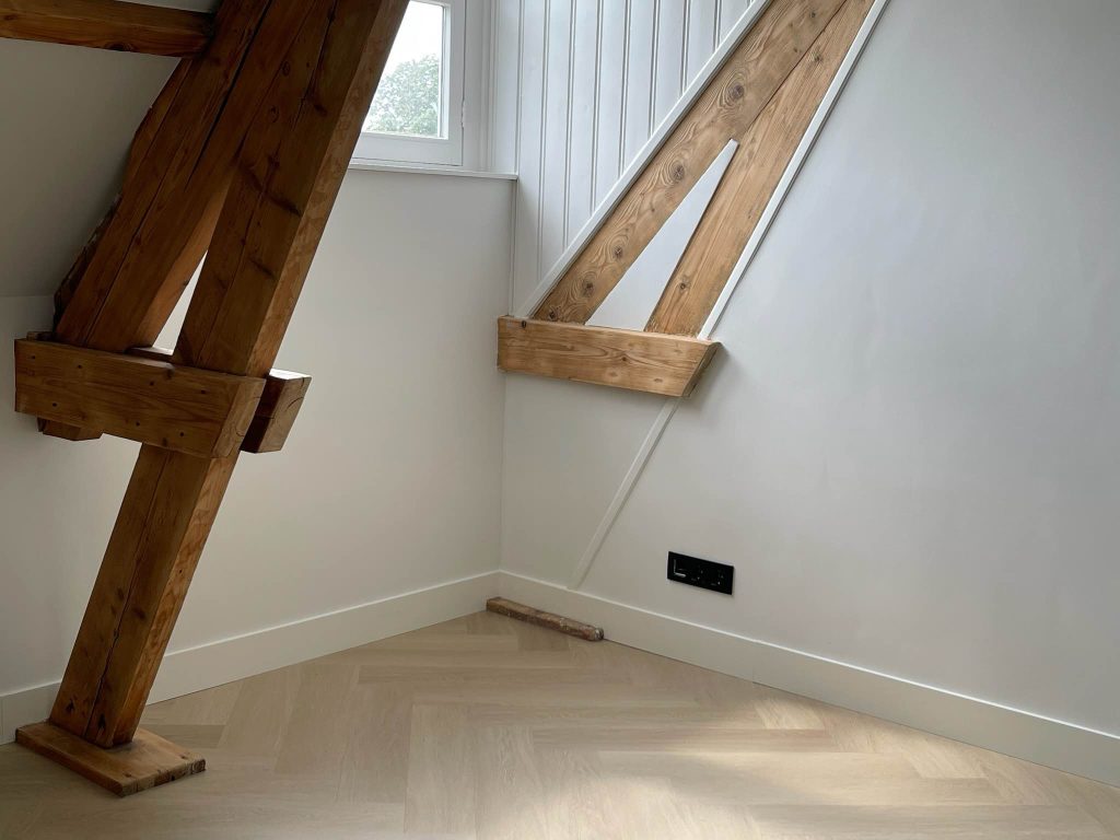 JA, HET KAN! Een prachtige pvc vloer op de oude houten ondervloer van een zolder. Door middel van het speciale egaliseersysteem is het alsnog mogelijk om een zogenoemde ‘zwevende ondervloer’ te leggen. De (minimale) werking van de vloer vind dus ook plaats onder de plinten. Zo ziet de vloer er altijd perfect uit!